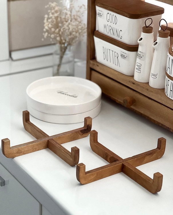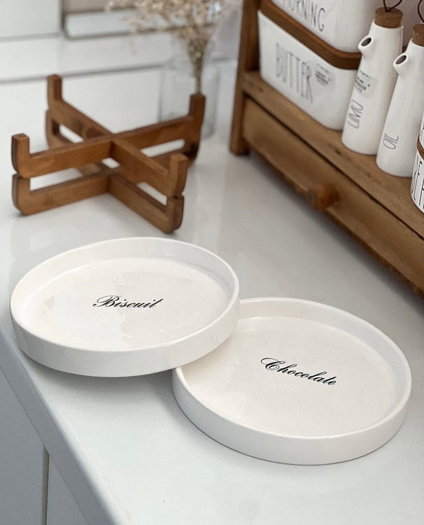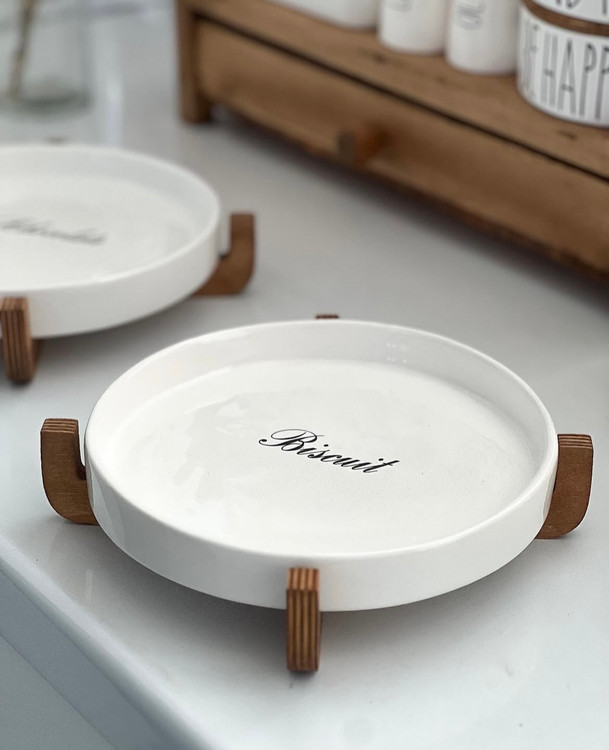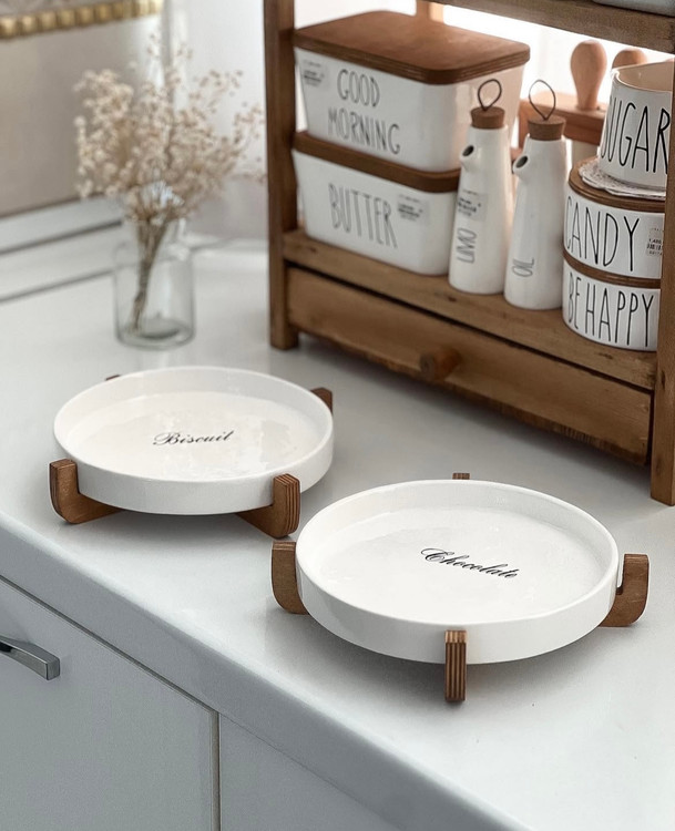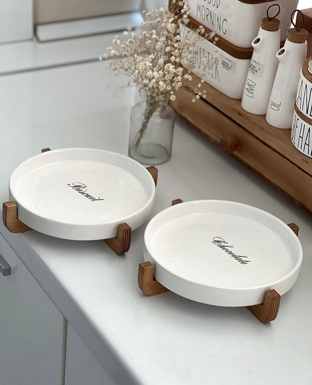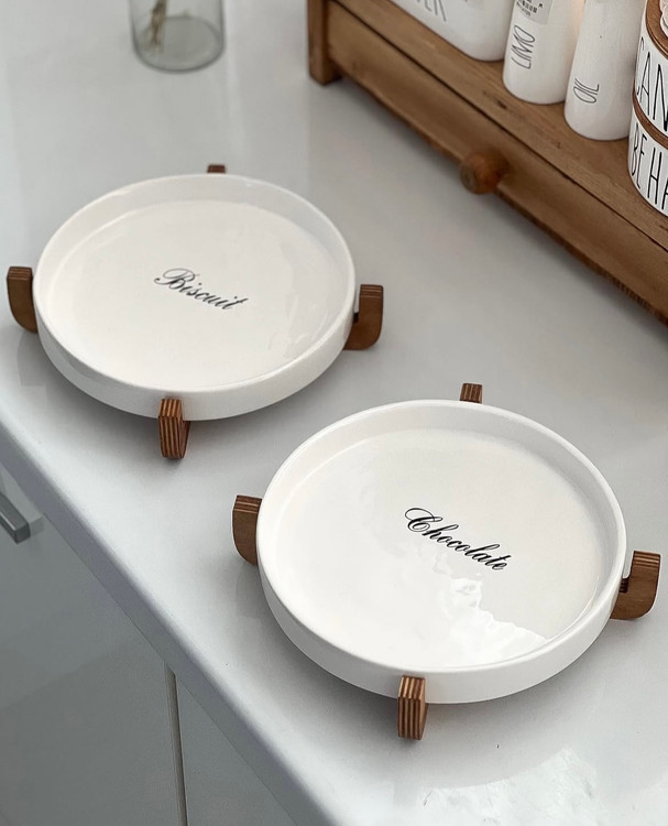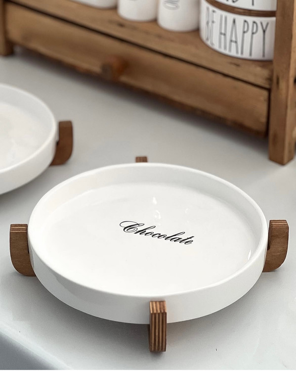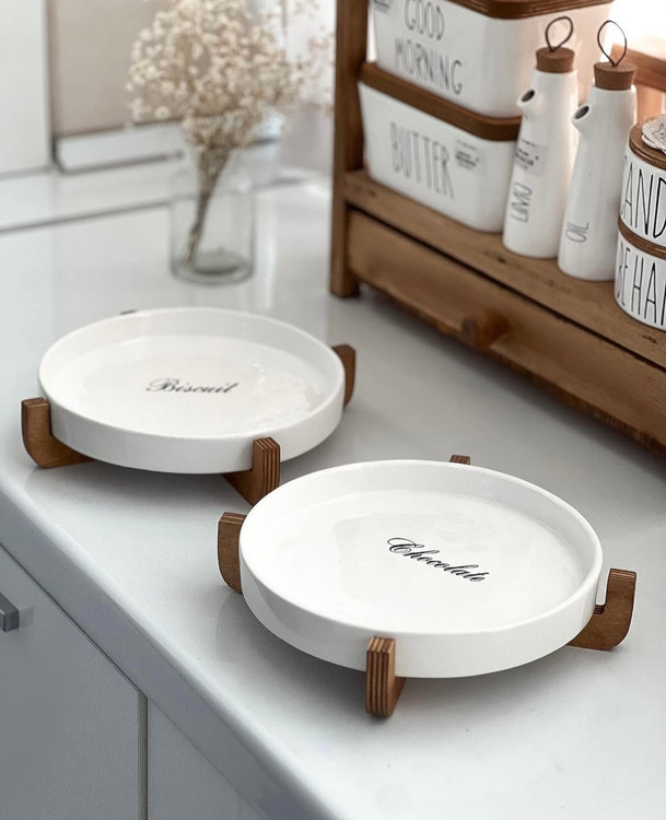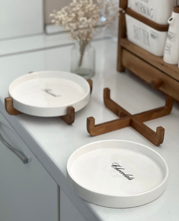 این ست زیبا شامل یک عدد بشقاب سرامیکی لبه دار تکست + استند چوبی هستش