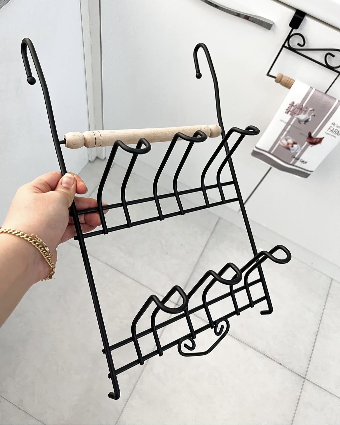 استند لیوان و فنجانِ فلزیِ دسته چوبی