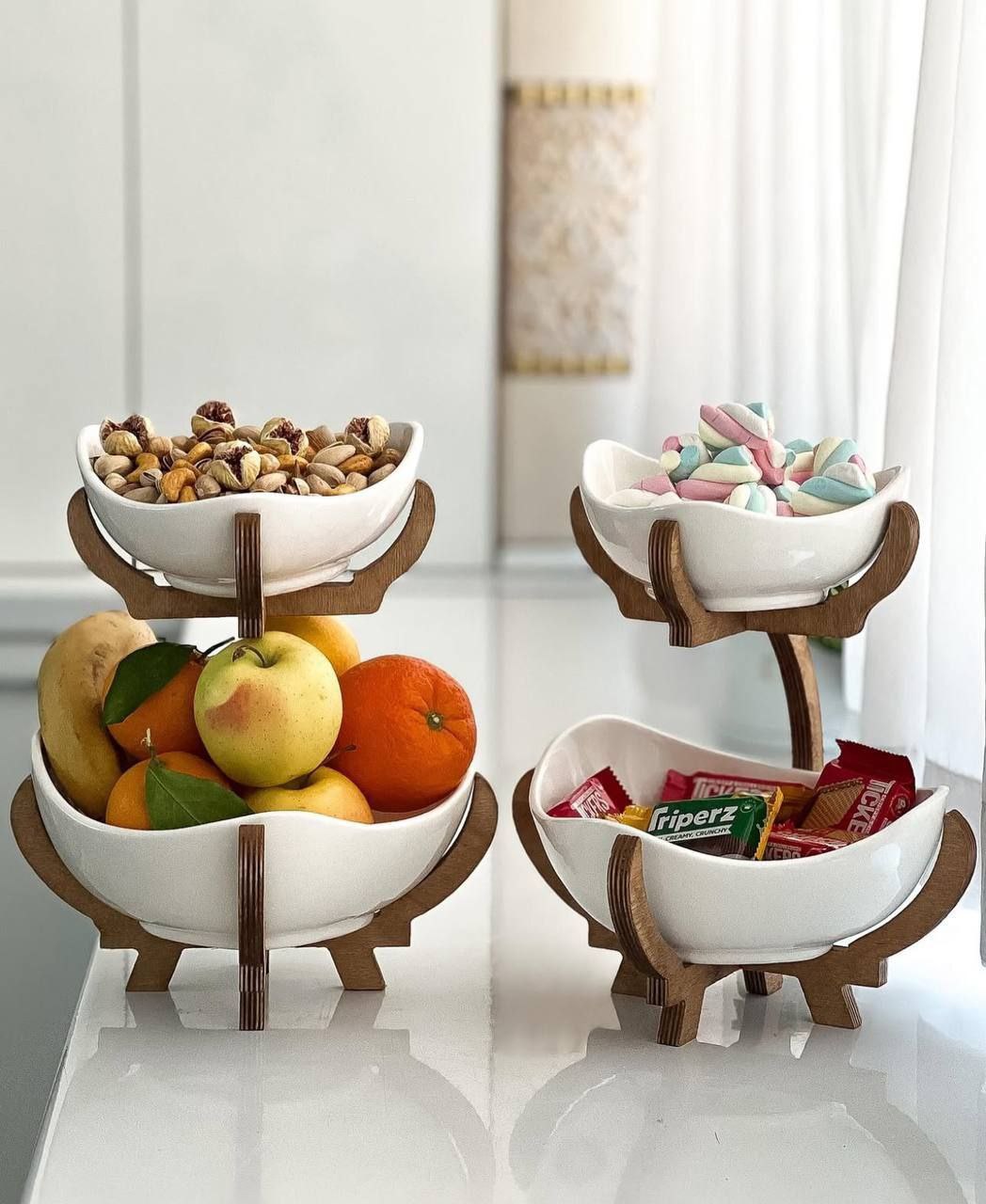 یکی از بهترین و پر کاربردی ترین هدیه ای ک میتونید بدید اونم با همچین کیفیتییییییی ظرفِ سروِ سایز بزرگِ سرامیکیِ پایه چوبی برای آجیل و میوه انار و هندوانه عالیه ابعاد حدودی : ۲۸ در ۱۷