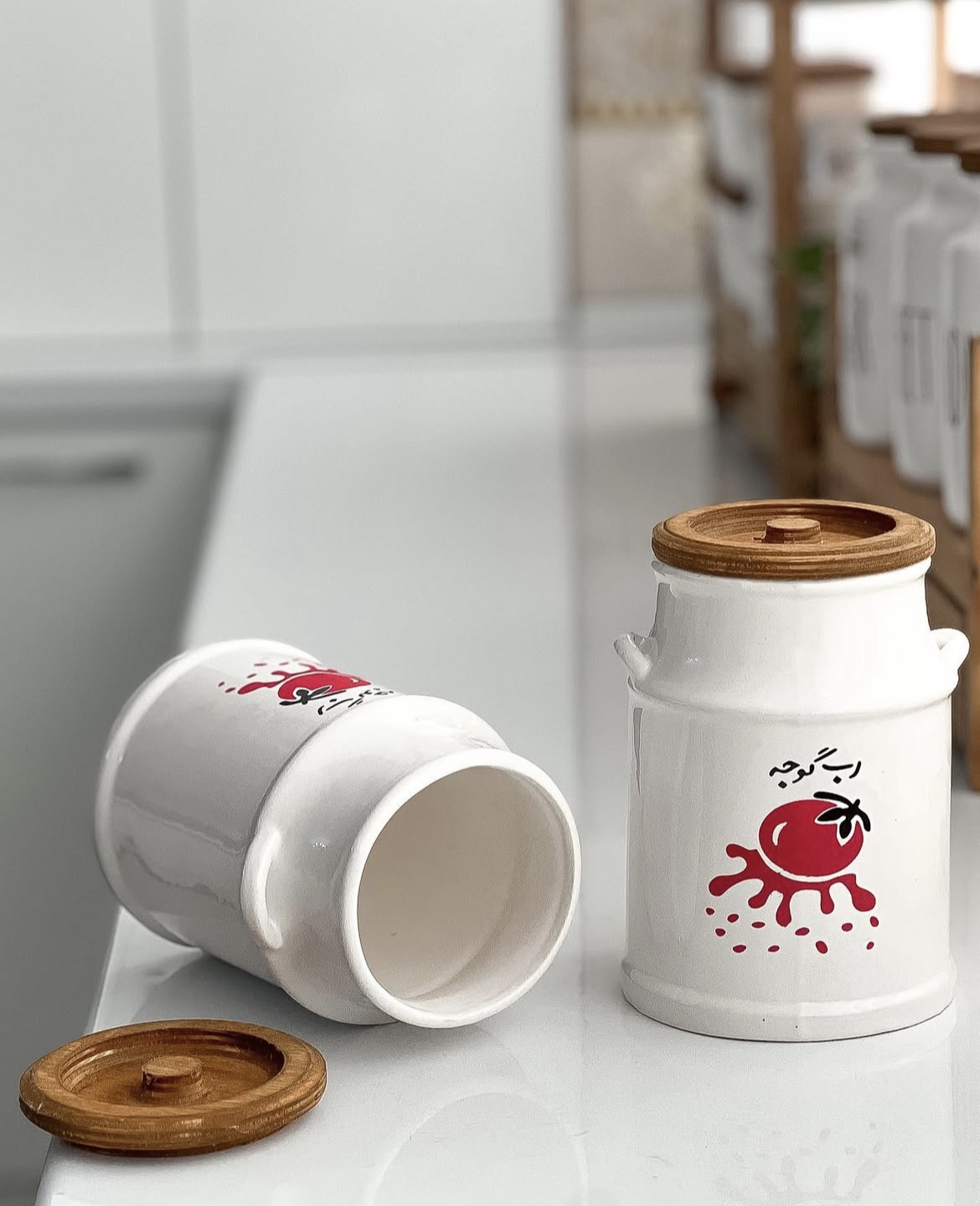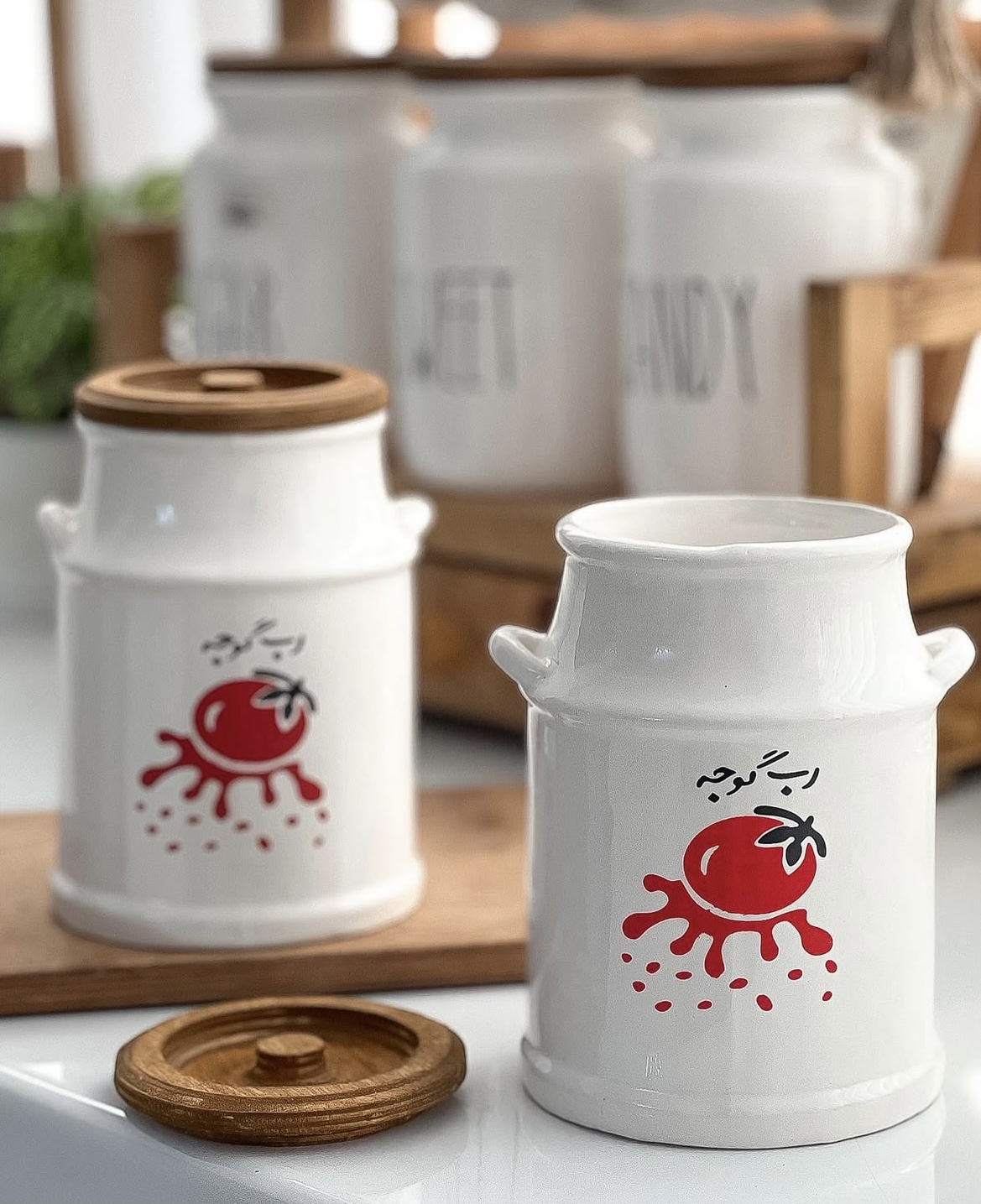 همیشه ترکیب چوب و سرامیک یه جذابیت خاصی داره و هیچ وقت هم از چشم نمیفتن مخصوصا اگر بانکه رب گوجه فرنگی باشه ابعاد :ارتفاع ۱۸ /قطر ۱۲