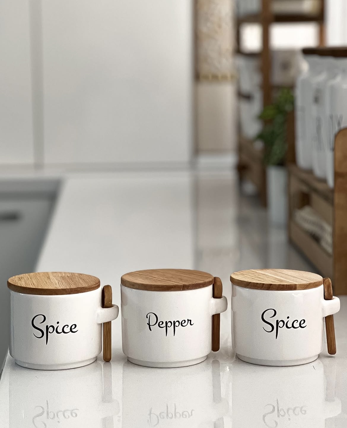 بانکه ادویه سرامیکیِ تکستِ درب چوبیِ قاشق دار۱۷۵٬۰۰۰ تومان